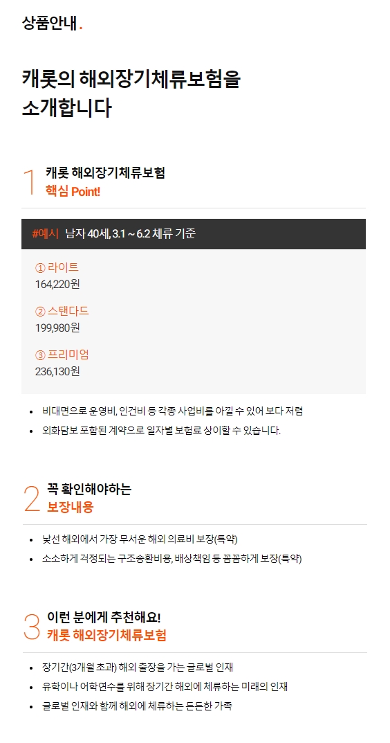 해외체류중 질병의 직접결과로써 사망한 경우 가입금액 지급해외여행중 질병의 직접결과로써 후유장해 상태가 된 경우 (미성년자의 경우 사망은 보장되지 않으며 후유장해는 캐롯만 지급됩니다.)